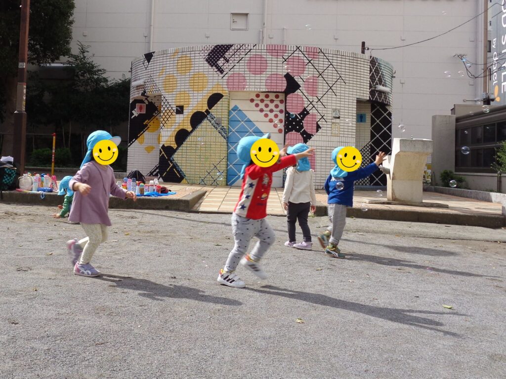 お友達と一緒にシャボン玉を追いかけて、元気いっぱいに走ります!