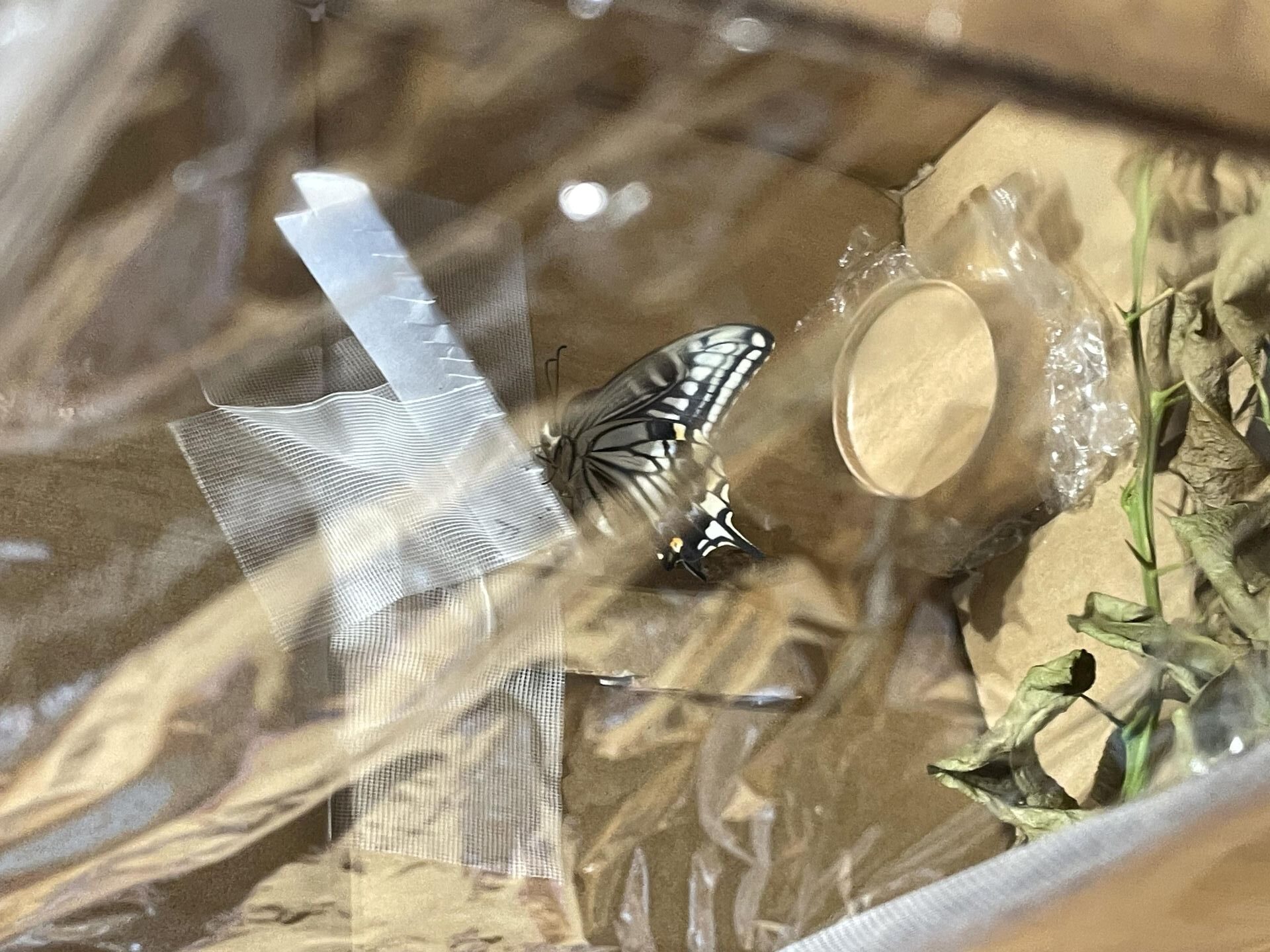 5月頃からきりん組のお部屋で育てていたイモムシがついにアゲハチョウになりました!