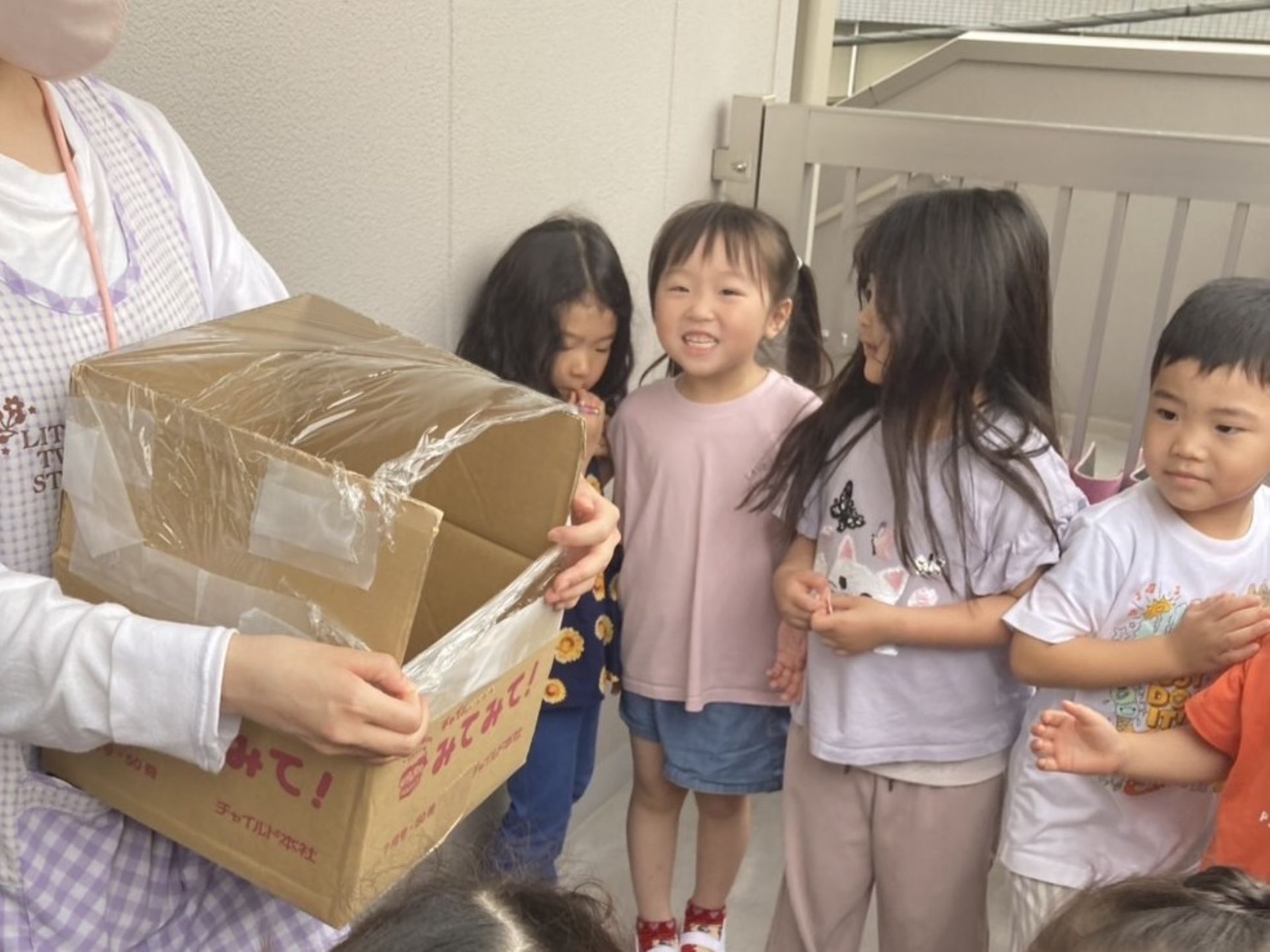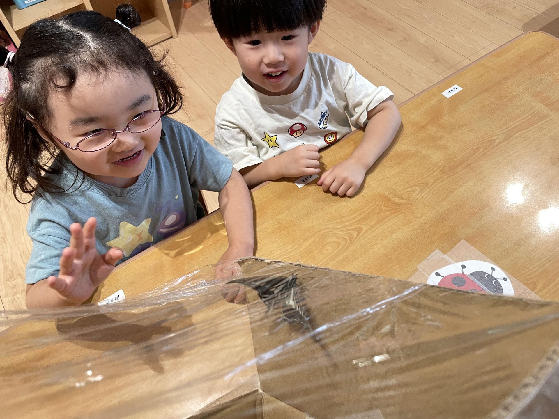 「羽は何色かな」「本当にちょうちょになるの?」と期待する様子もありました。