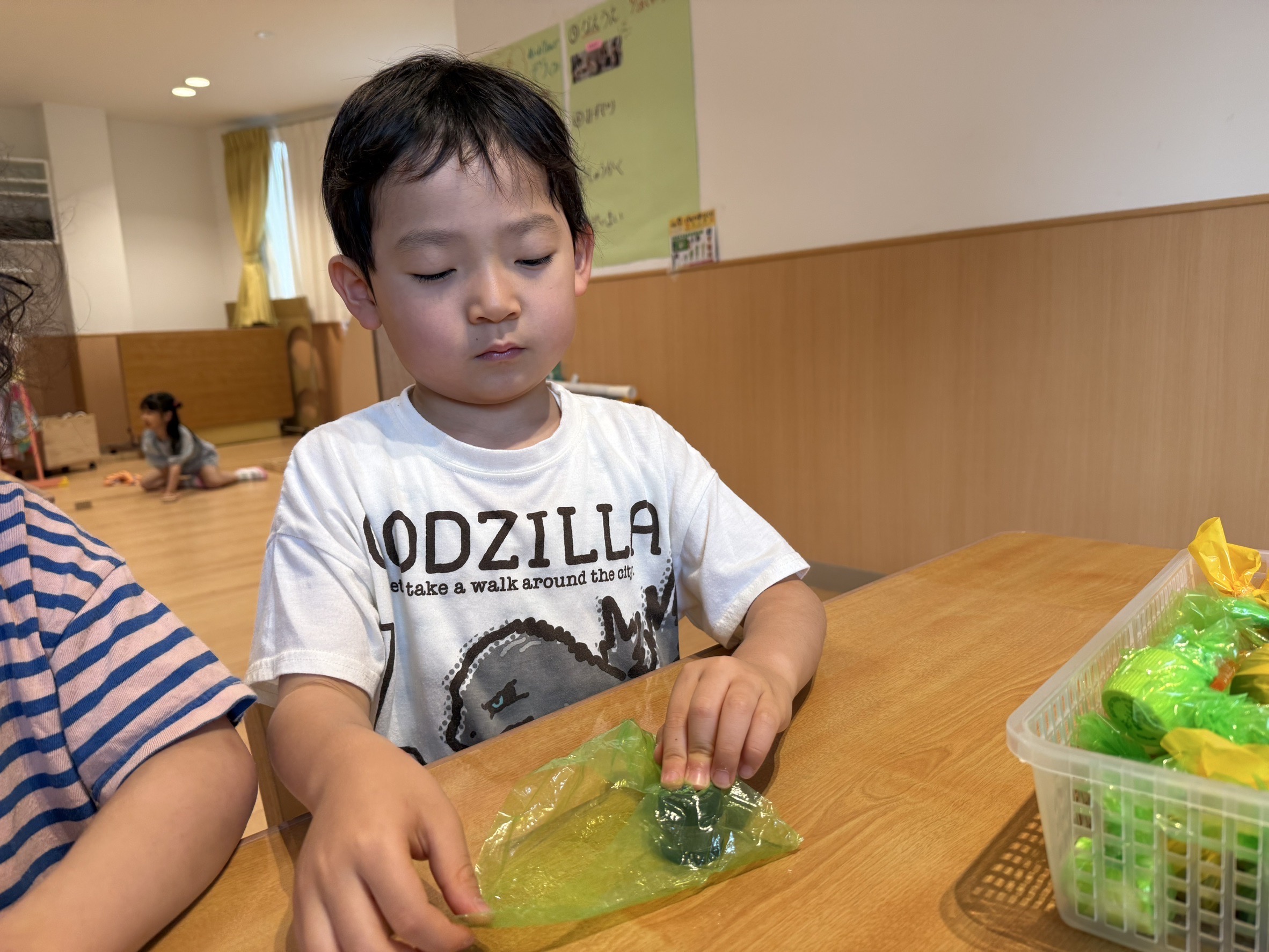 先日行われた『夏祭りごっこ』に向け、準備をしてきたぞう組の子ども達。