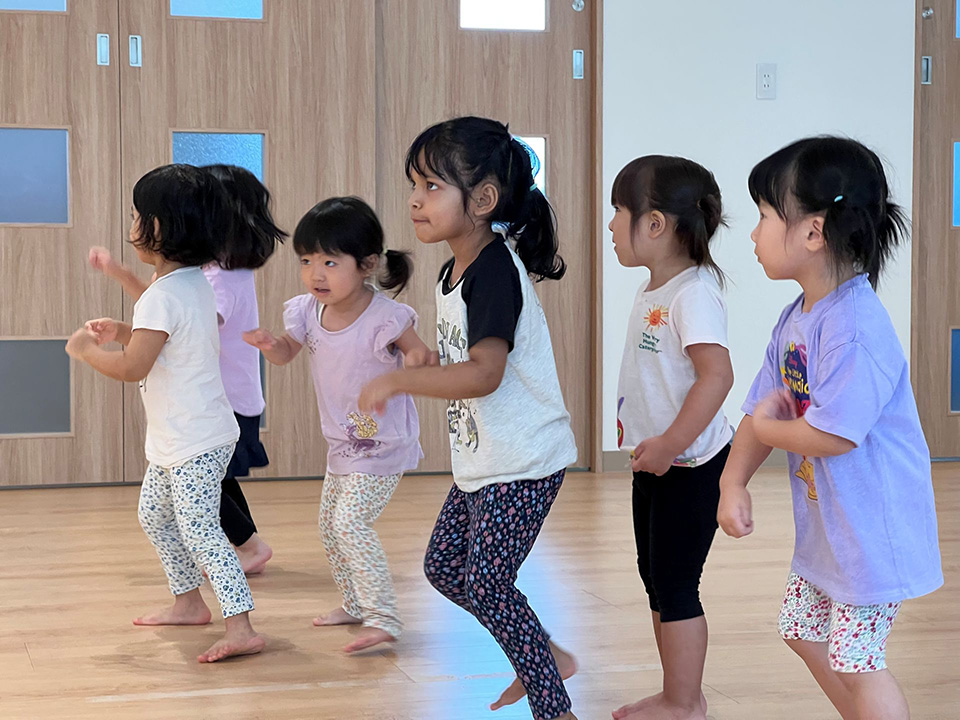 楽しい曲に合わせて、ぴょんぴょん跳ねたり、ポーズをとったり