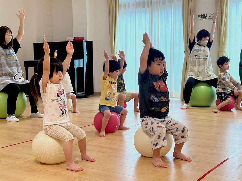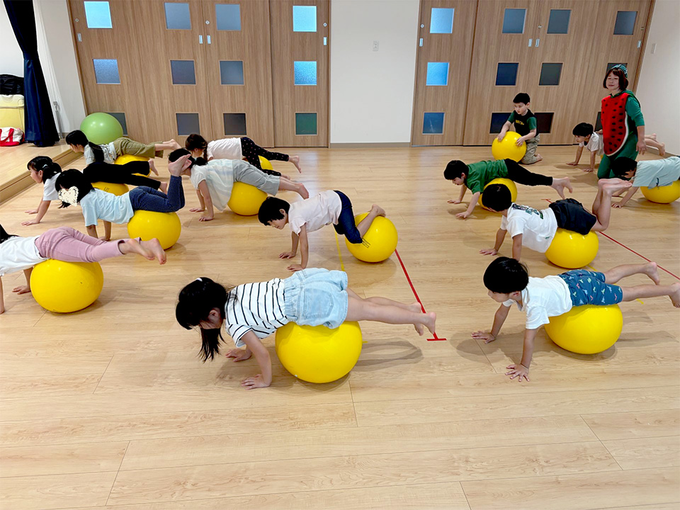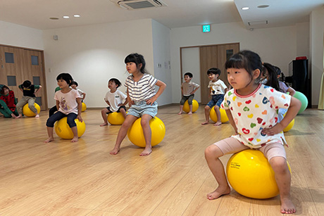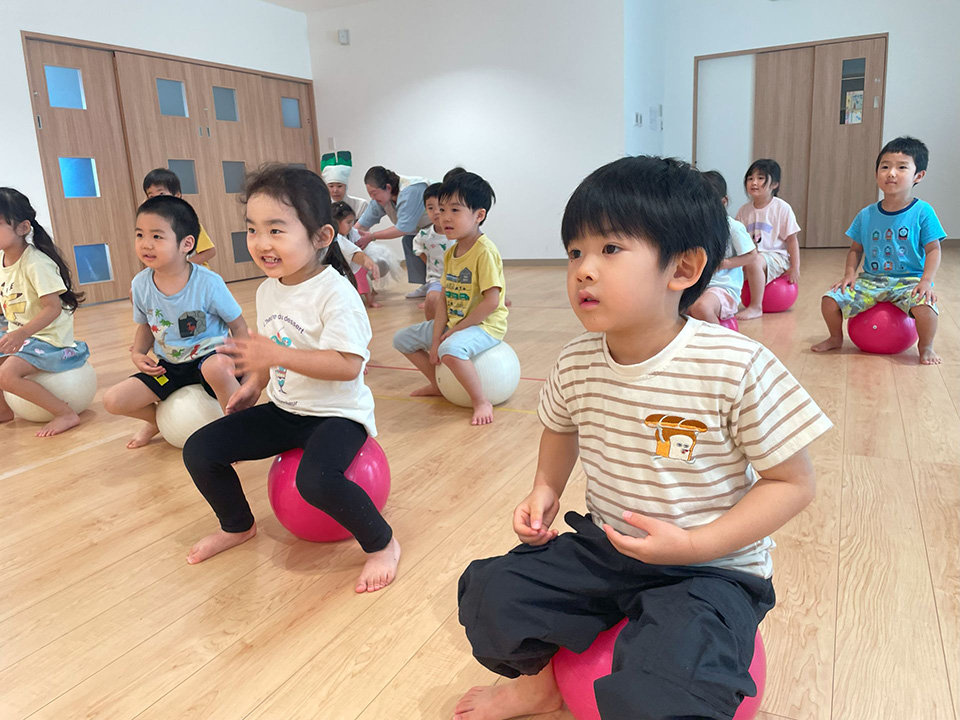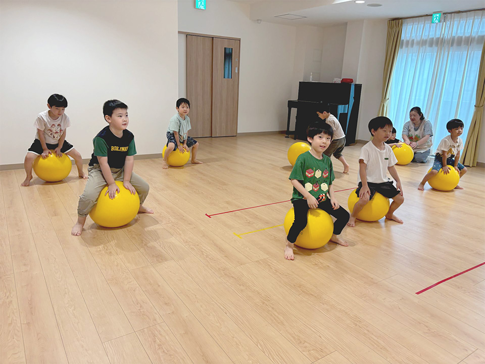 幼児クラスのお友だちがバランスボールを初体験しました。