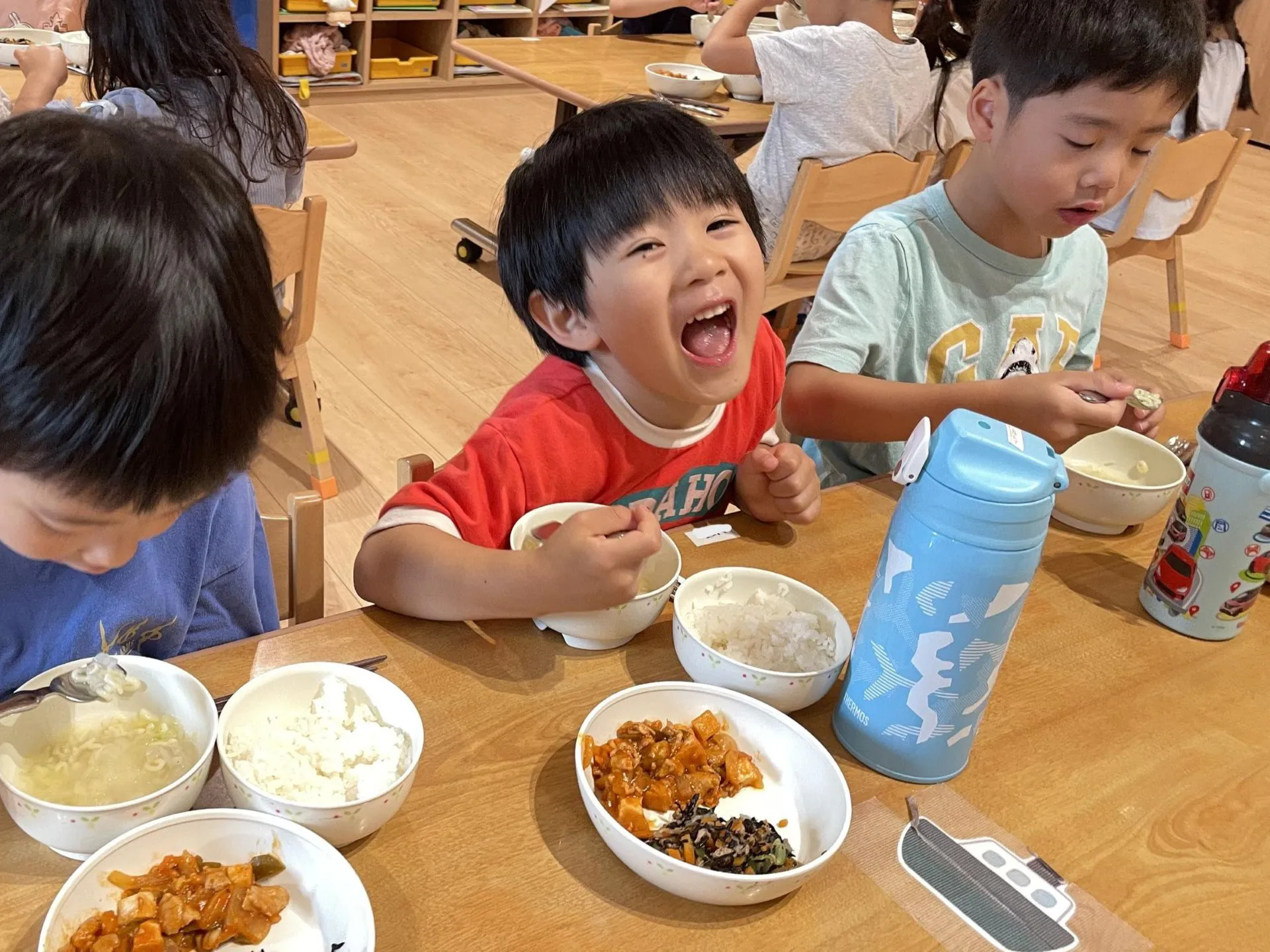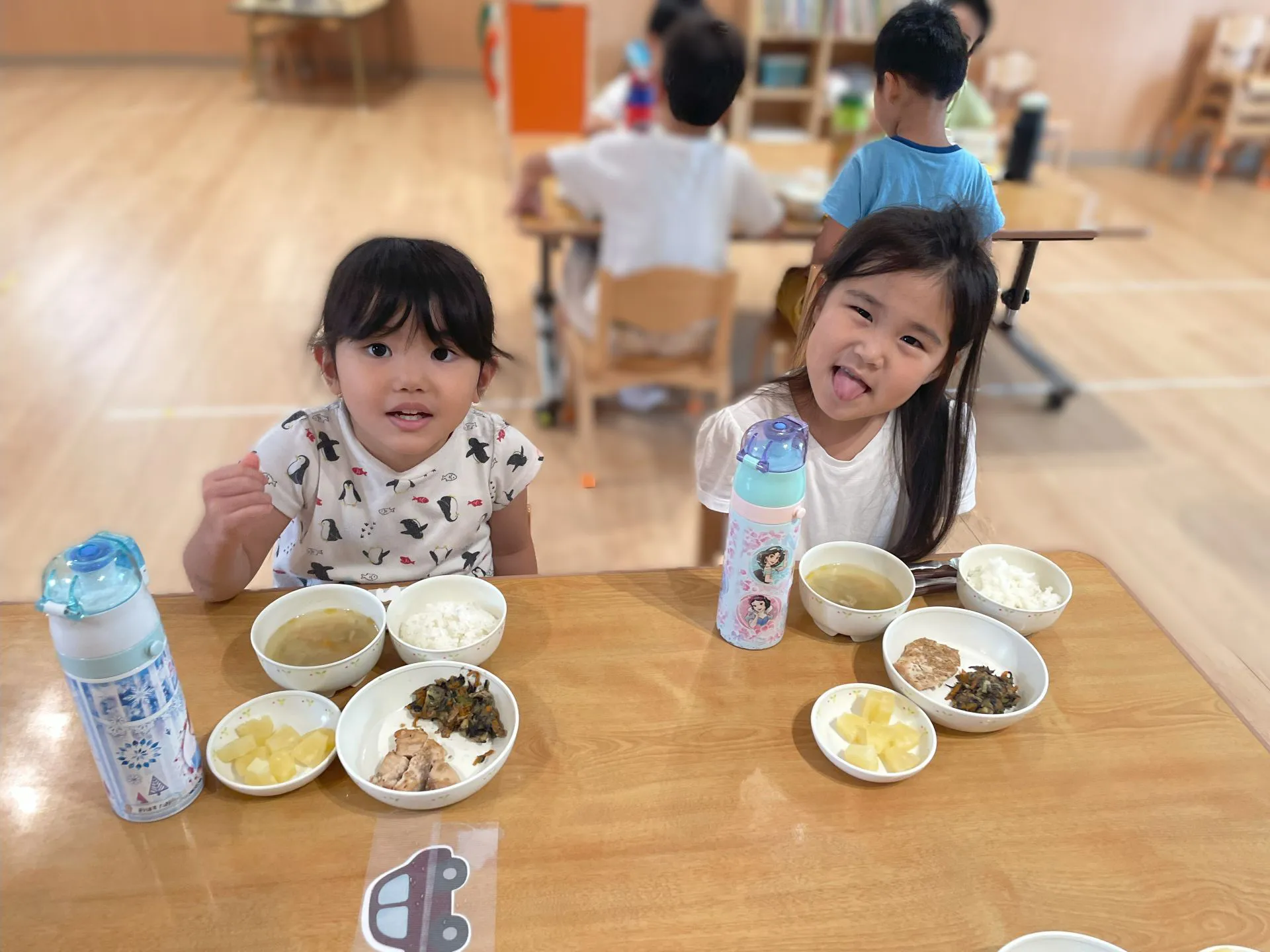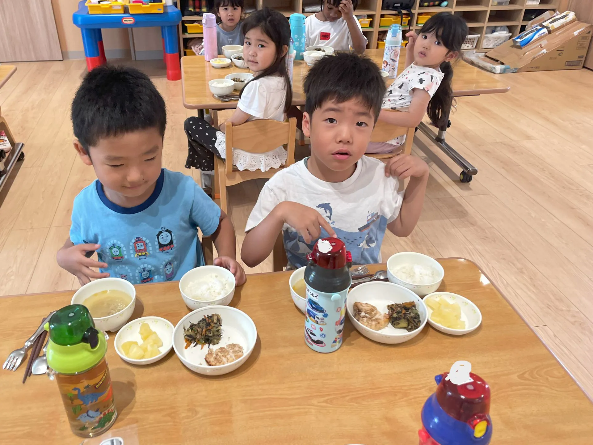 「ごはんが左?」「これで合ってる?」と自分たちで食器の配置を意識しながら配膳する姿が見られるようになりました。