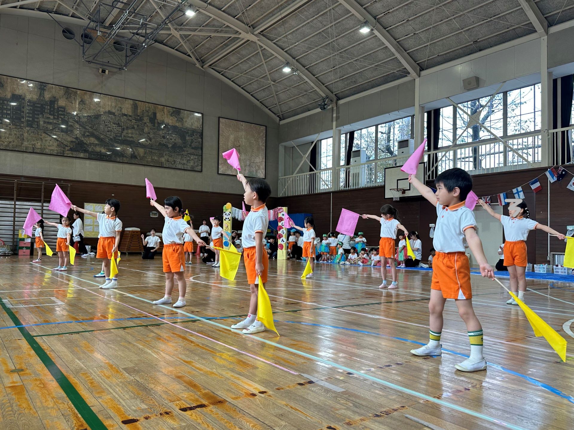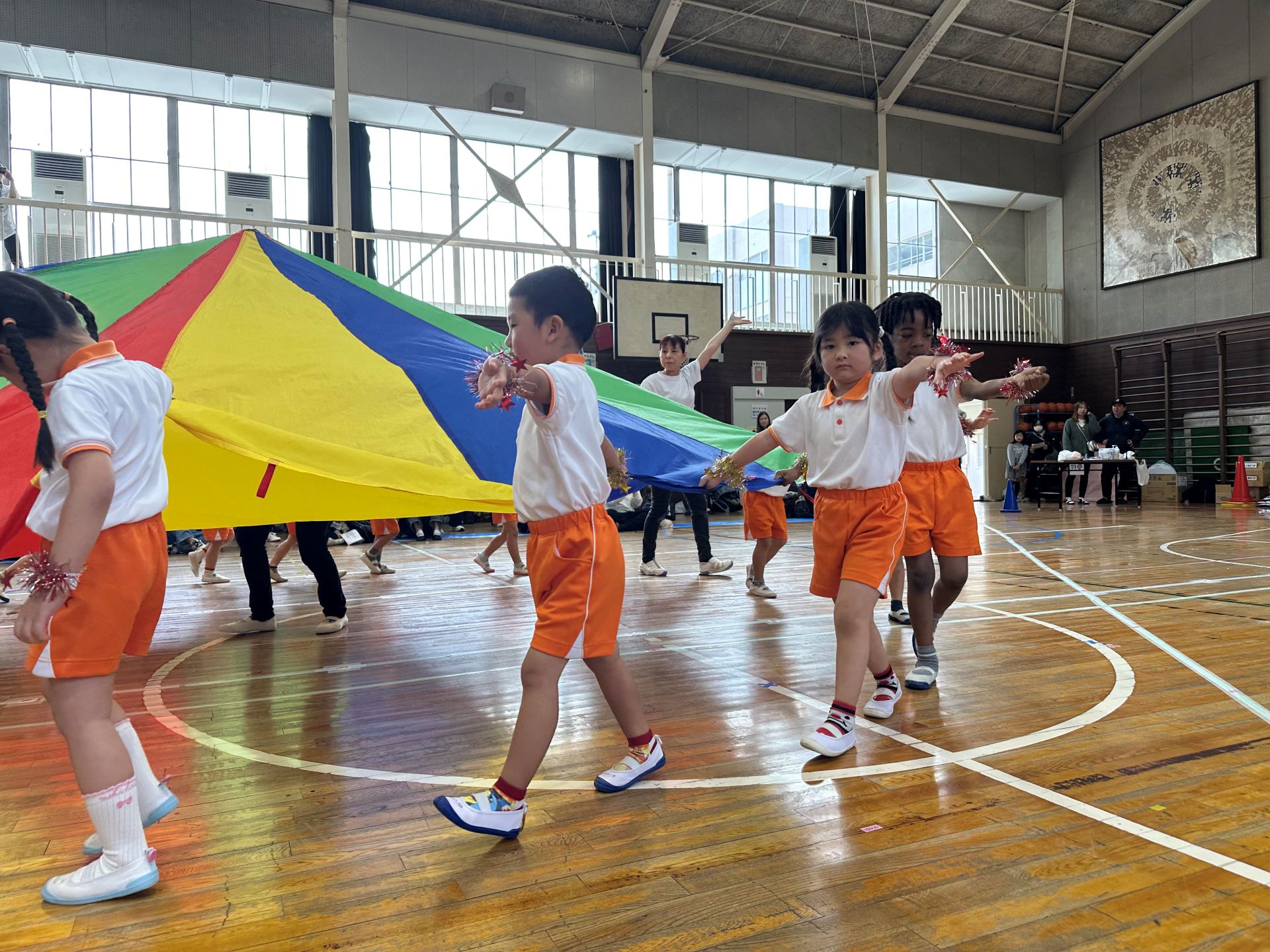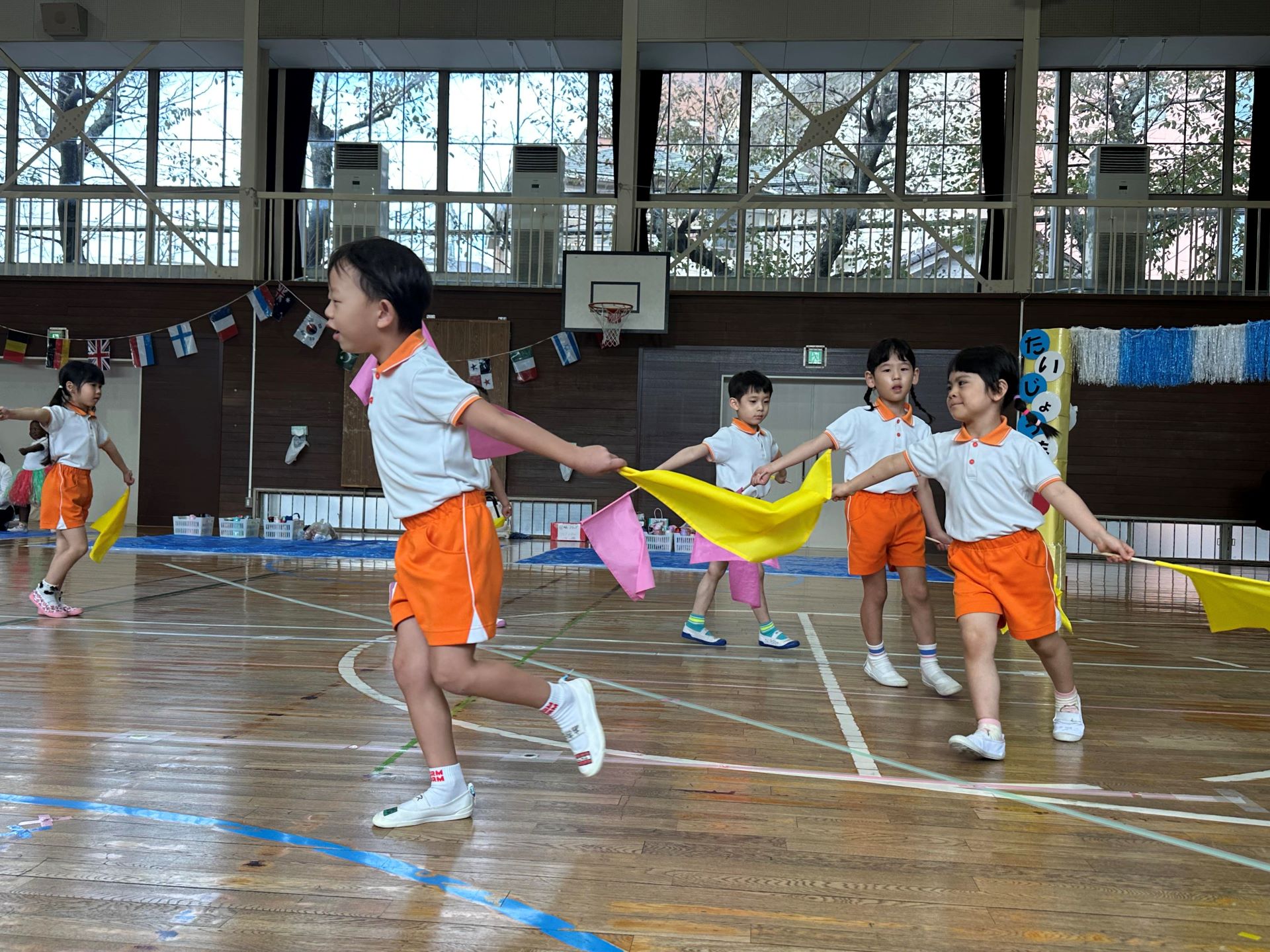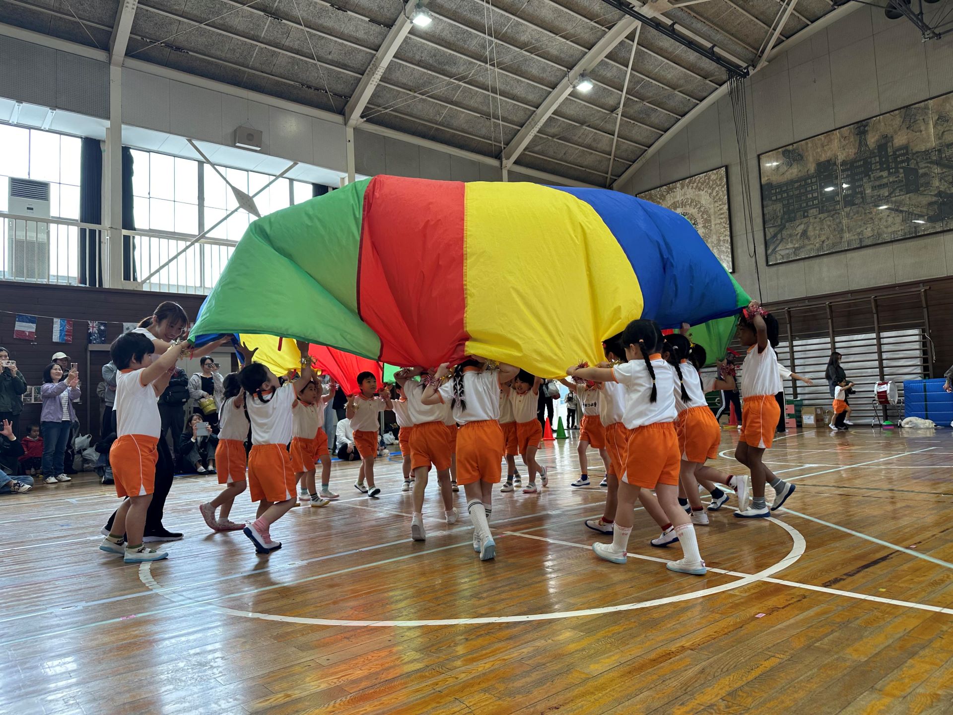 お遊戯やフラッグ、パラバルーンや組体操を披露し、たくさんの声援と拍手をもらいみんなとっても楽しそうでした☆彡