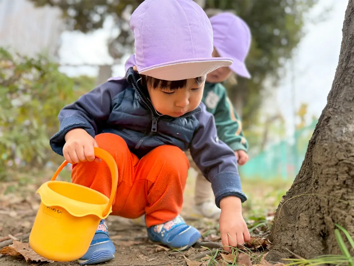 遊び場に着くと、お砂場でお友達と一緒に遊んだり、ドングリをもくもくと探したり、元気いっぱい駆けまわったりと思い思いに楽しんでいます♪